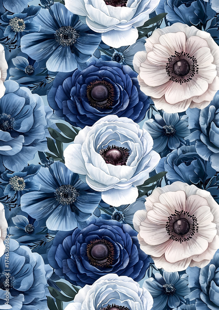A Blue And White Floral Print With A Wallpaper Mural - Decorly Solutions | Decorly Solutions