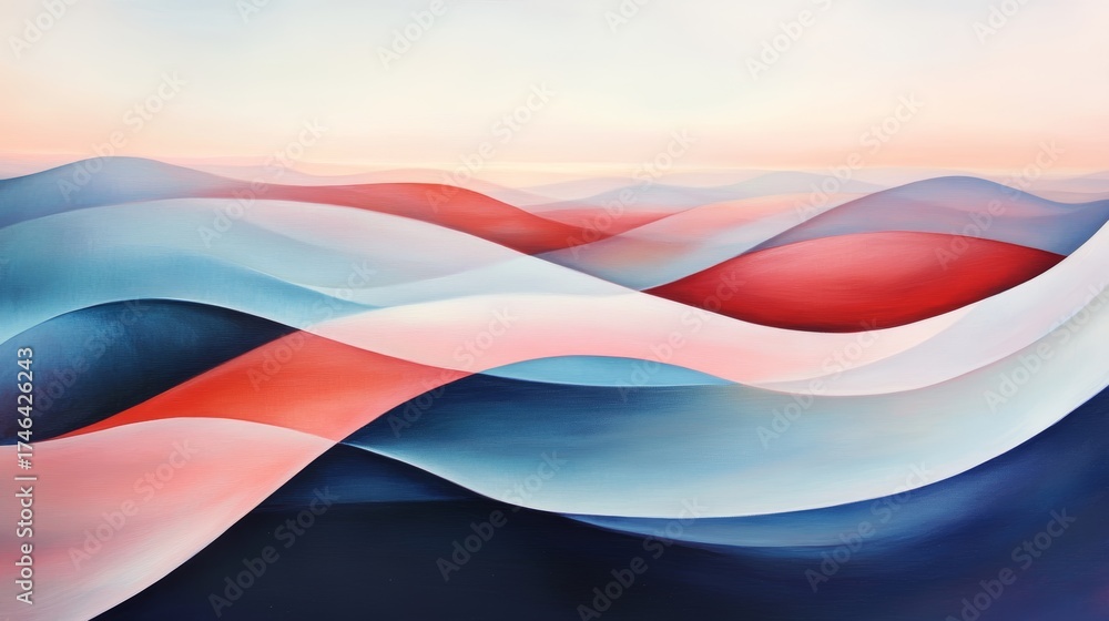 Abstract Red and Blue Fluid Wave Forms
