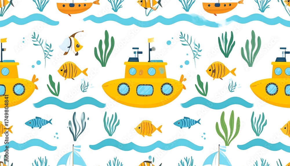 Underwater Submarine Pattern With Fish And Plants Wallpaper Mural - Decorly Solutions | Decorly Solutions