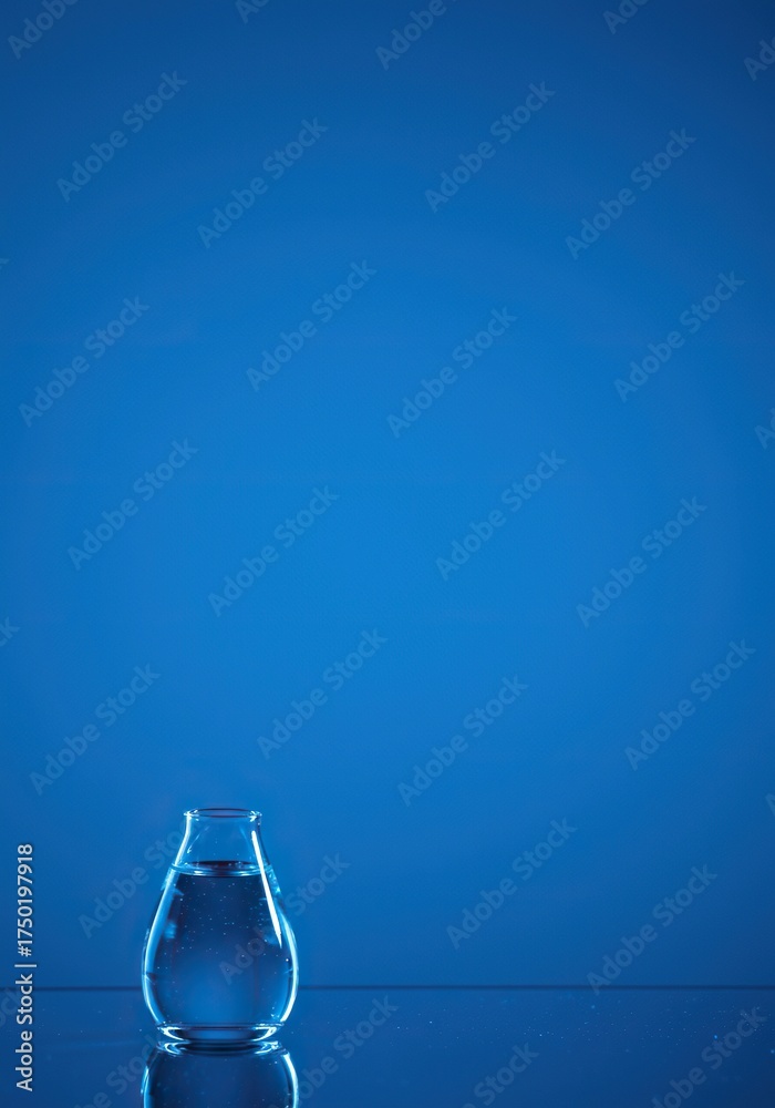 Sunlit flask with clear liquid, shadow play on surface