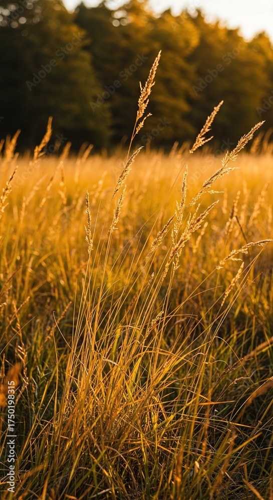 Golden and brown autumn grass sways gently in a tranquil field under warm sunlight, highlighting the serene beauty of the changing season ,morning ,nature ,season
