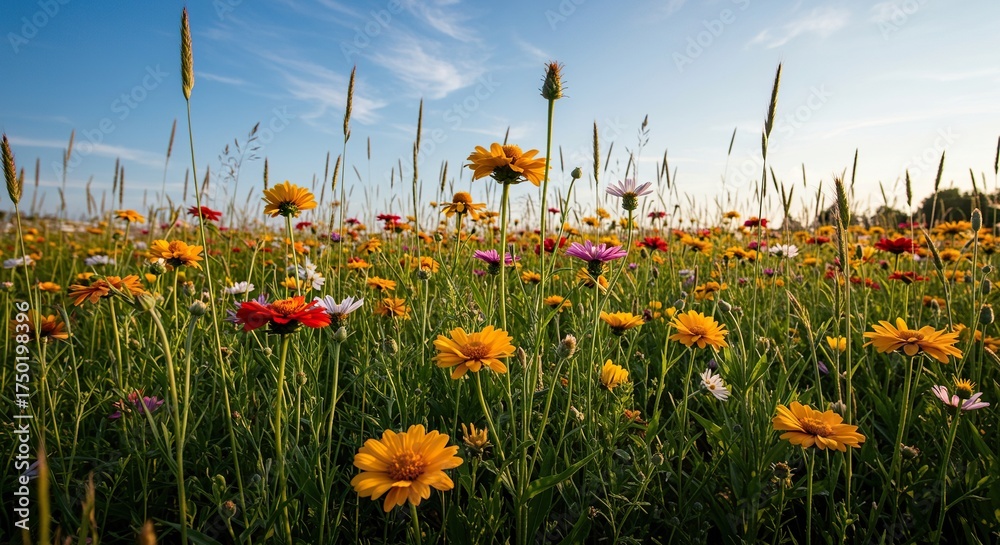 A Vibrant Meadow Filled With Colorful Wild Flowers Wallpaper Mural - Decorly Solutions | Decorly Solutions