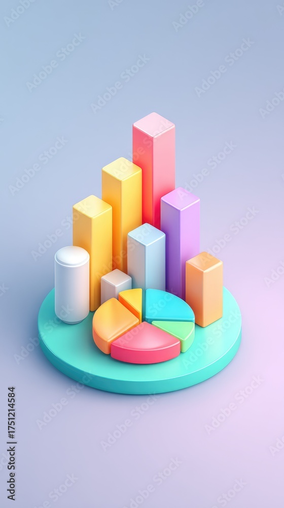 Colorful 3d Rendered Chart And Pie Graph On Wallpaper Mural - Decorly Solutions | Decorly Solutions