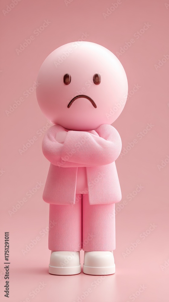 Pink Figure With Arms Crossed And Sad Expression Wallpaper Mural - Decorly Solutions | Decorly Solutions