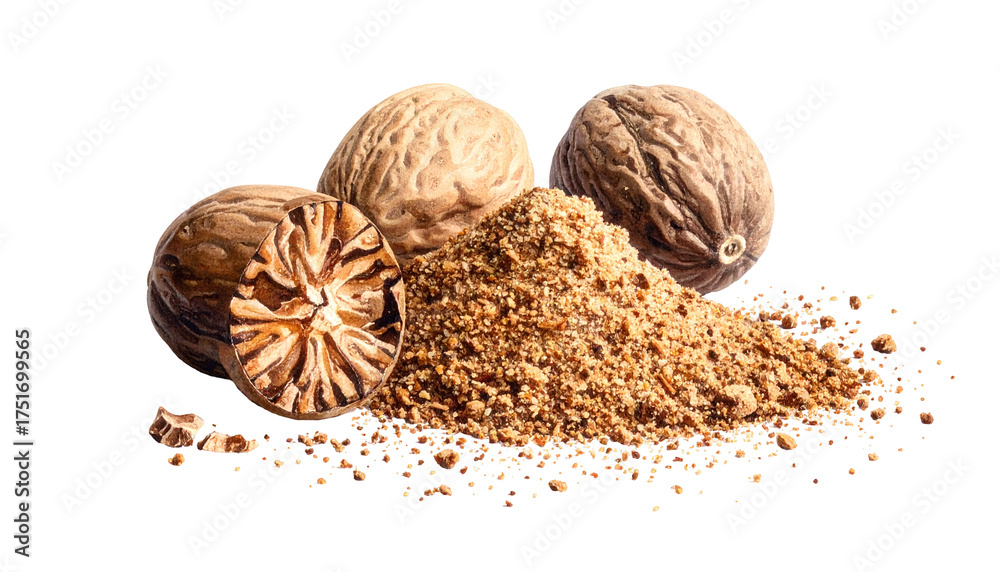 Whole Nutmegs With A Pile Of Ground Spice Wallpaper Mural - Decorly Solutions | Decorly Solutions