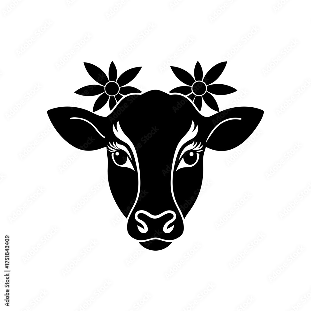 Cow Face With Flowers On Its Head On Wallpaper Mural - Decorly Solutions | Decorly Solutions