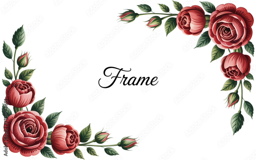 Elegant Floral Frame With Vibrant Red Roses And Wallpaper Mural - Decorly Solutions | Decorly Solutions