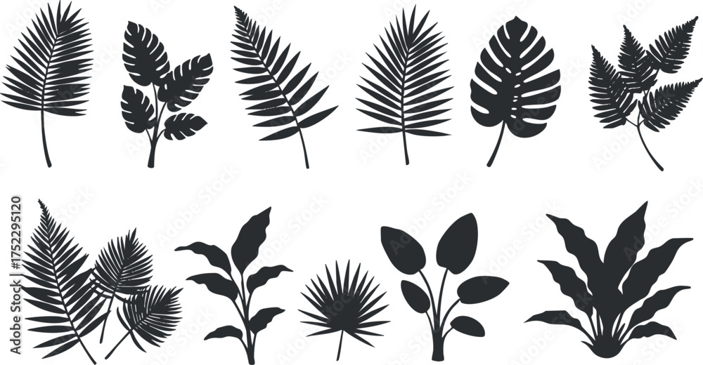 A Collection Of Black Silhouette Leaves Showcasing Various Wallpaper Mural - Decorly Solutions | Decorly Solutions