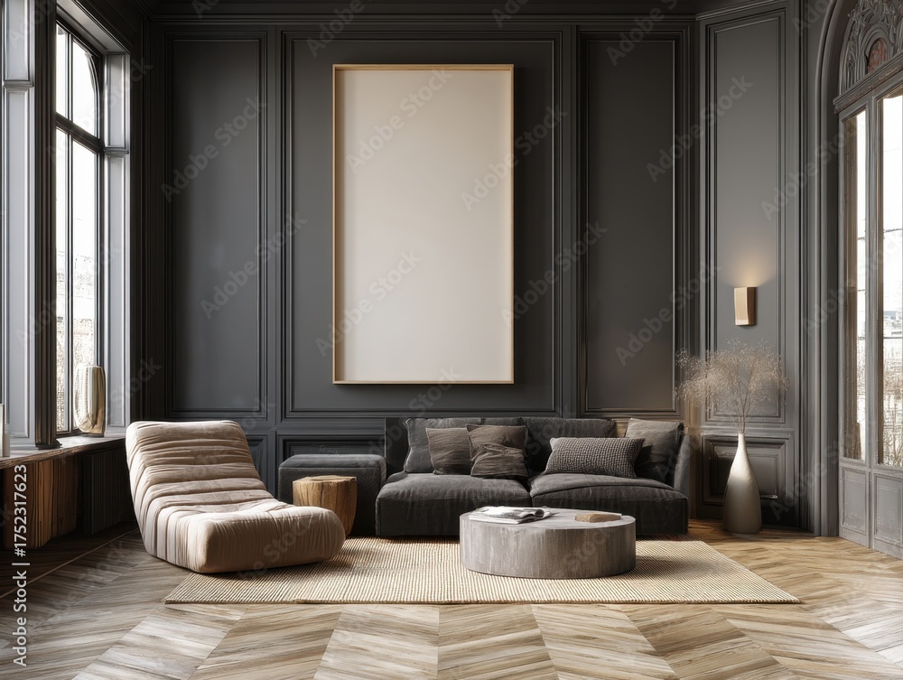 A Living Room With A Large White Framed Wallpaper Mural - Decorly Solutions | Decorly Solutions