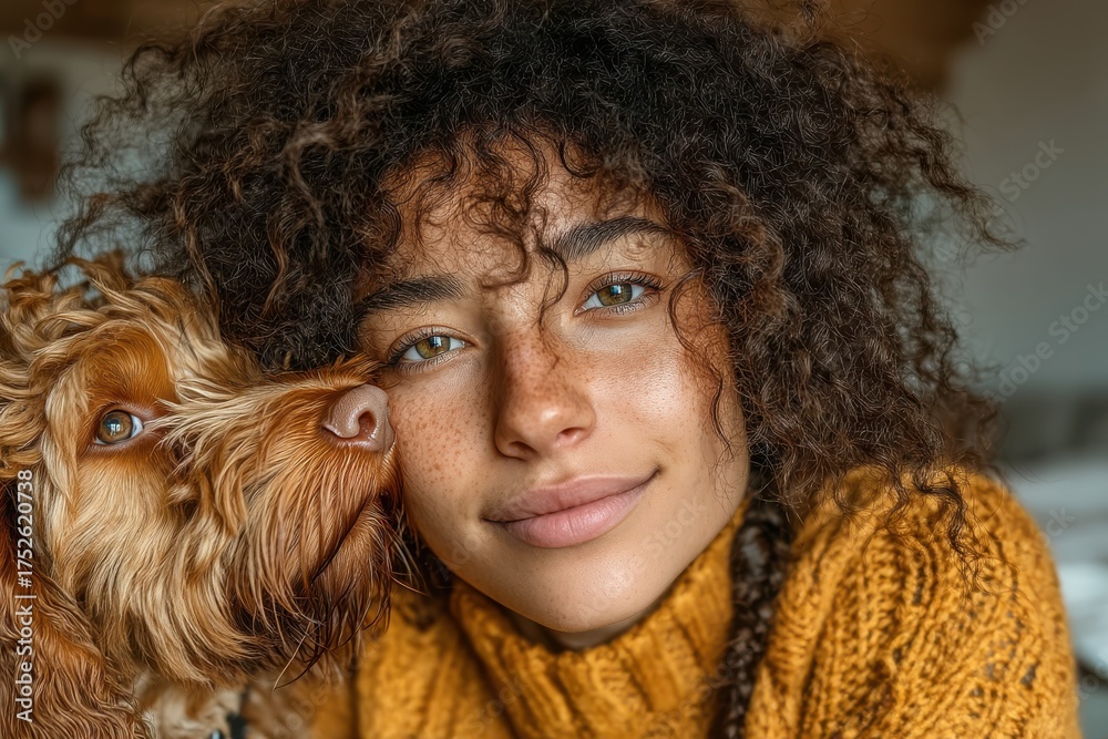 Young Woman Smiling With Her Dog In A Wallpaper Mural - Decorly Solutions | Decorly Solutions