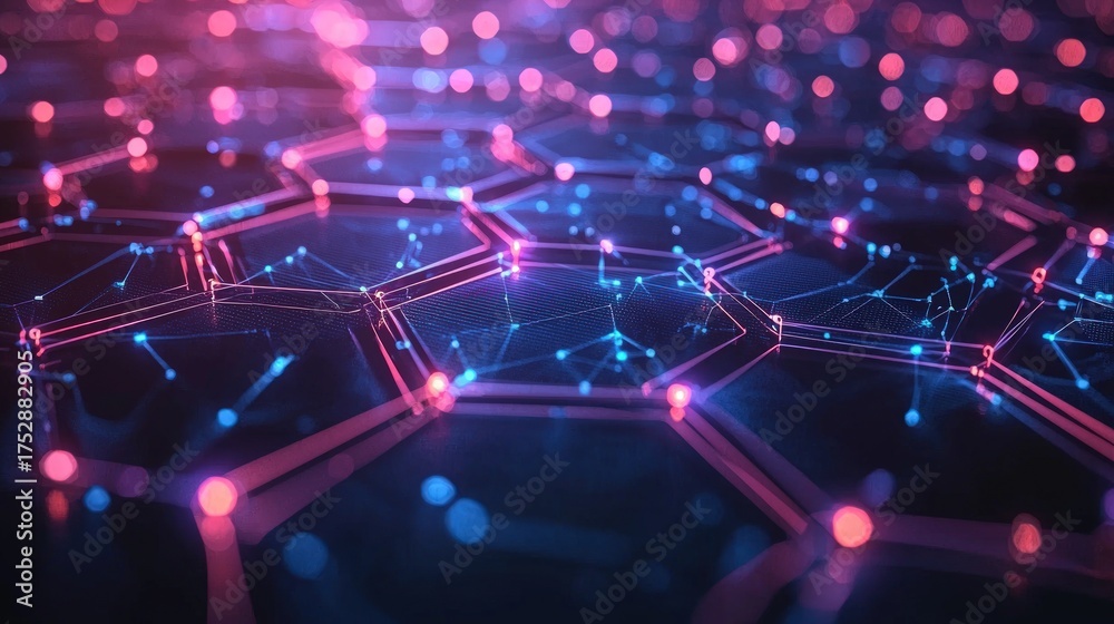 Abstract Hexagonal Network With Glowing Connections And Particles Wallpaper Mural - Decorly Solutions | Decorly Solutions