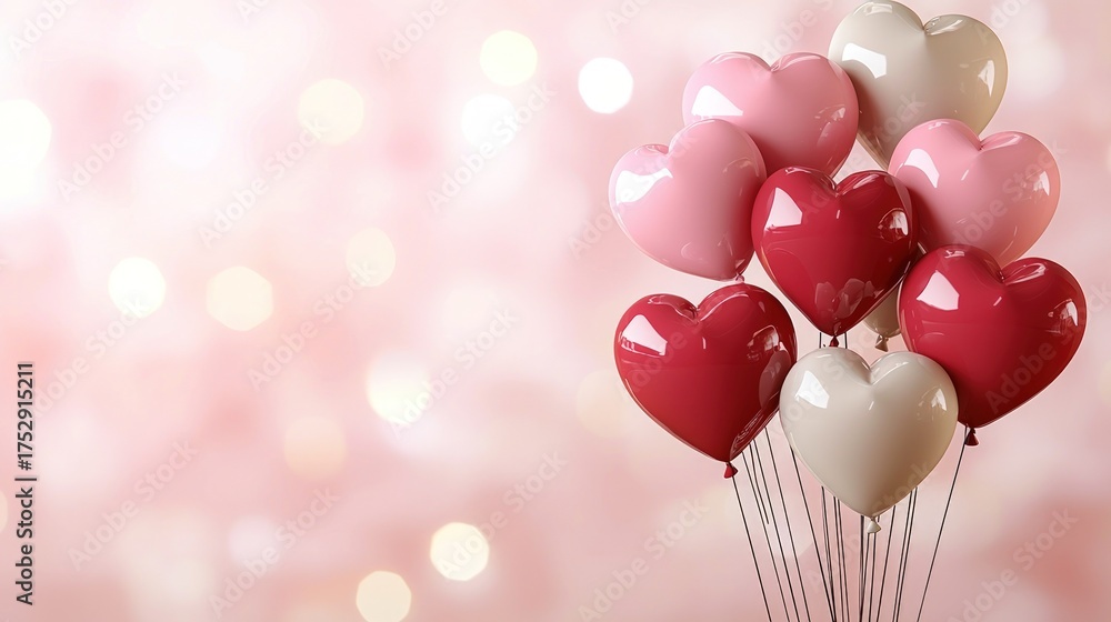 Romantic Heart Balloons On Pink Bokeh Background For Wallpaper Mural - Decorly Solutions | Decorly Solutions