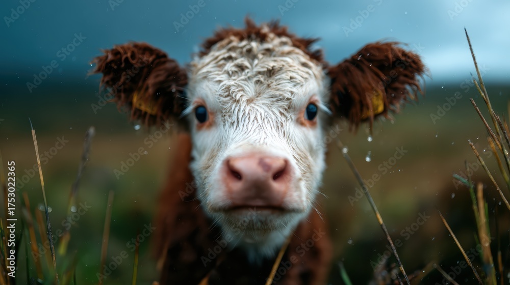 A captivating close-up of a young calf looking directly at t Wallpaper