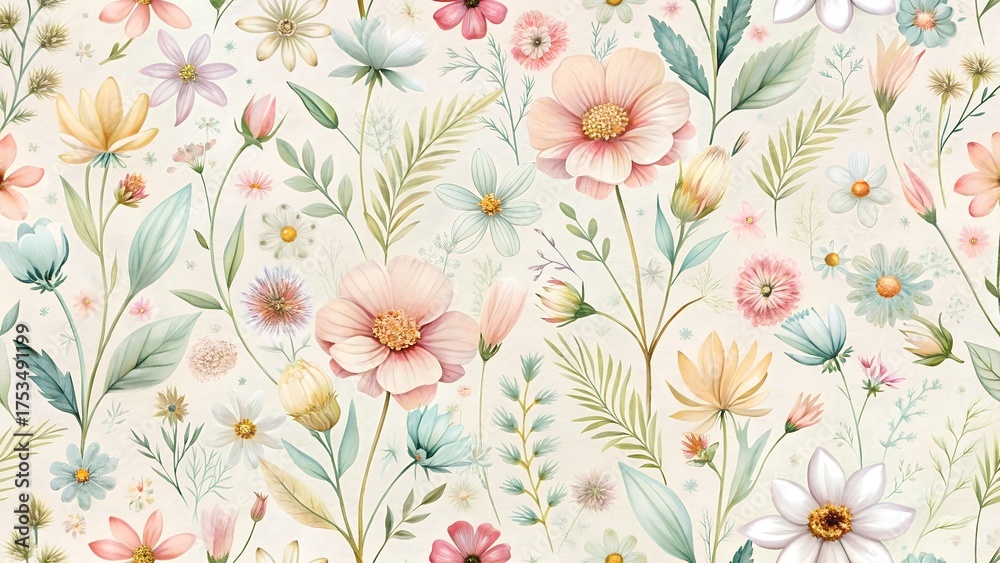 Soft Watercolor Floral Pattern With Delicate Pastel Flowers Wallpaper Mural - Decorly Solutions | Decorly Solutions