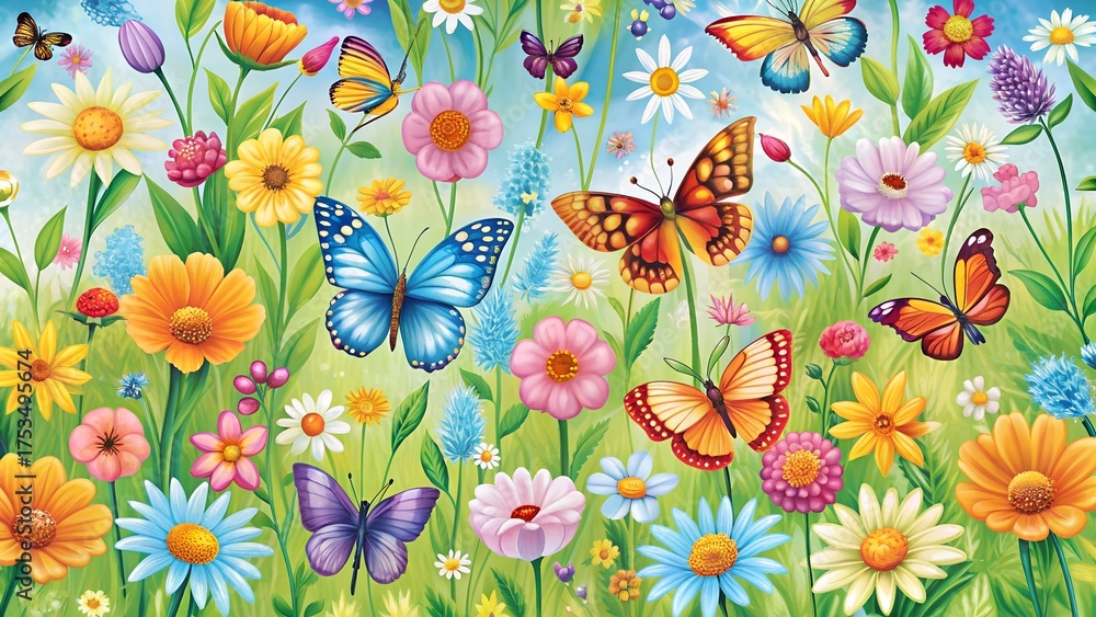 Vibrant Meadow Teeming With Colorful Butterflies And Diverse Wallpaper Mural - Decorly Solutions | Decorly Solutions