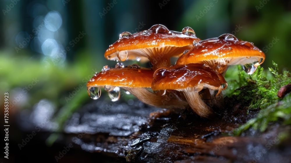 A Close-up Of Mushrooms With Water Droplets Sitting Wallpaper Mural - Decorly Solutions | Decorly Solutions