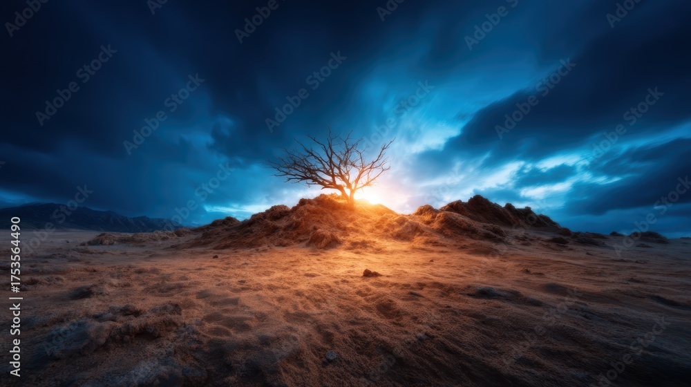 A Solitary Tree Stands Majestically Against An Intense Wallpaper Mural - Decorly Solutions | Decorly Solutions
