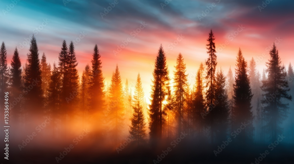 A Breathtaking View Of A Misty Forest At Wallpaper Mural - Decorly Solutions | Decorly Solutions