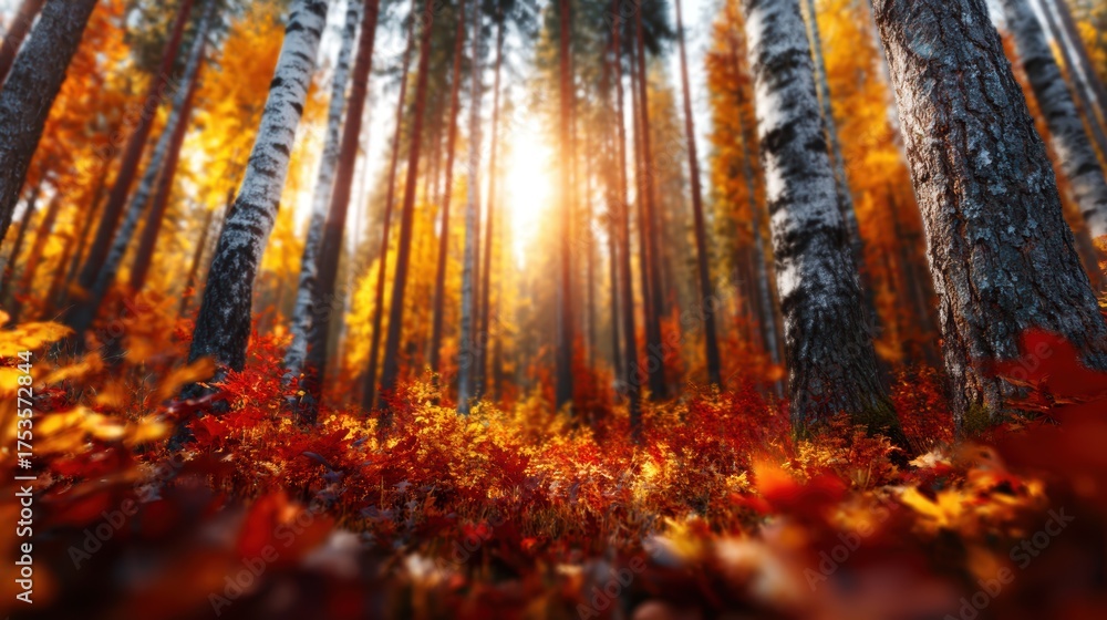 A Breathtaking Autumn Forest Scene Where Golden Sunlight Wallpaper Mural - Decorly Solutions | Decorly Solutions