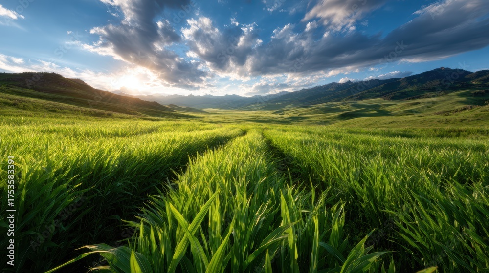 A Breathtaking Panorama Of Rolling Green Hills Illuminated Wallpaper Mural - Decorly Solutions | Decorly Solutions