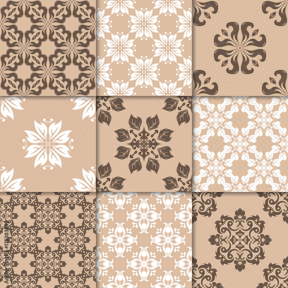Brown Beige Floral Ornaments Collection Of Seamless Patterns Wallpaper Mural - Decorly Solutions | Decorly Solutions
