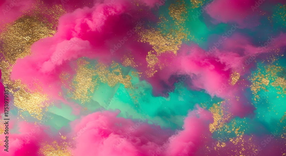 Abstract Artwork Featuring Swirling Pink Smoke With Gold Wallpaper Mural - Decorly Solutions | Decorly Solutions