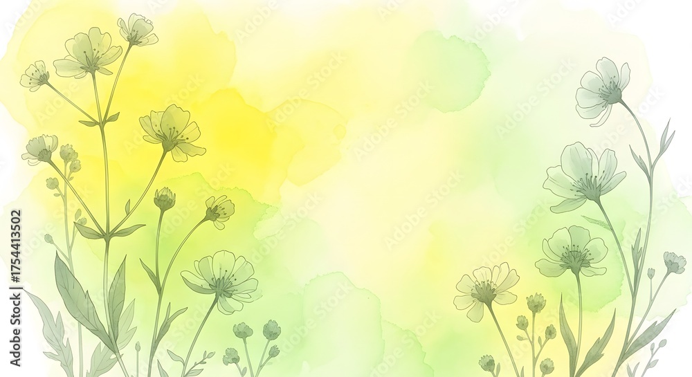 Delicate wildflowers silhouetted against a soft yellow and g Wallpaper