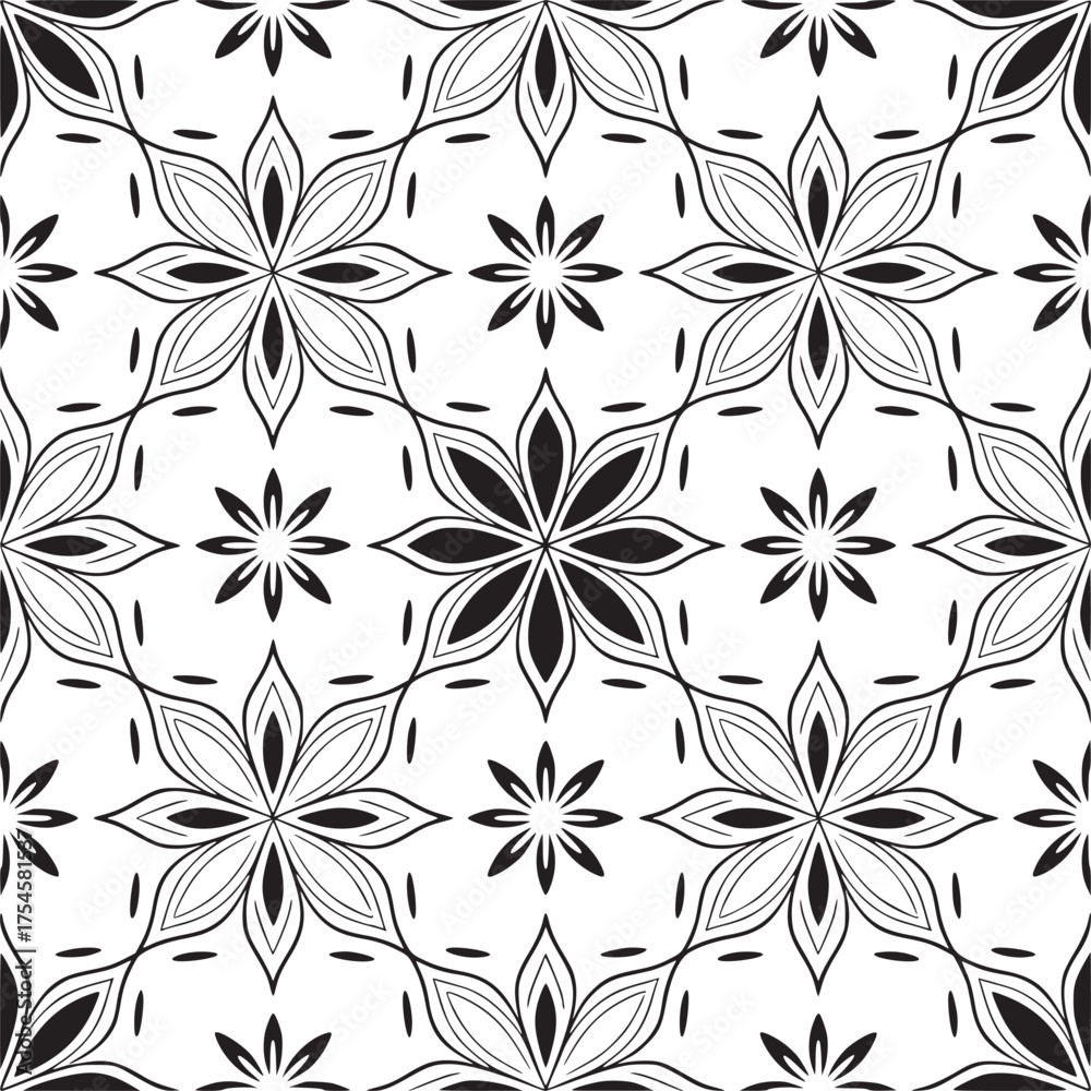 Vector Art Of Seamless Floral Pattern With Black Wallpaper Mural - Decorly Solutions | Decorly Solutions