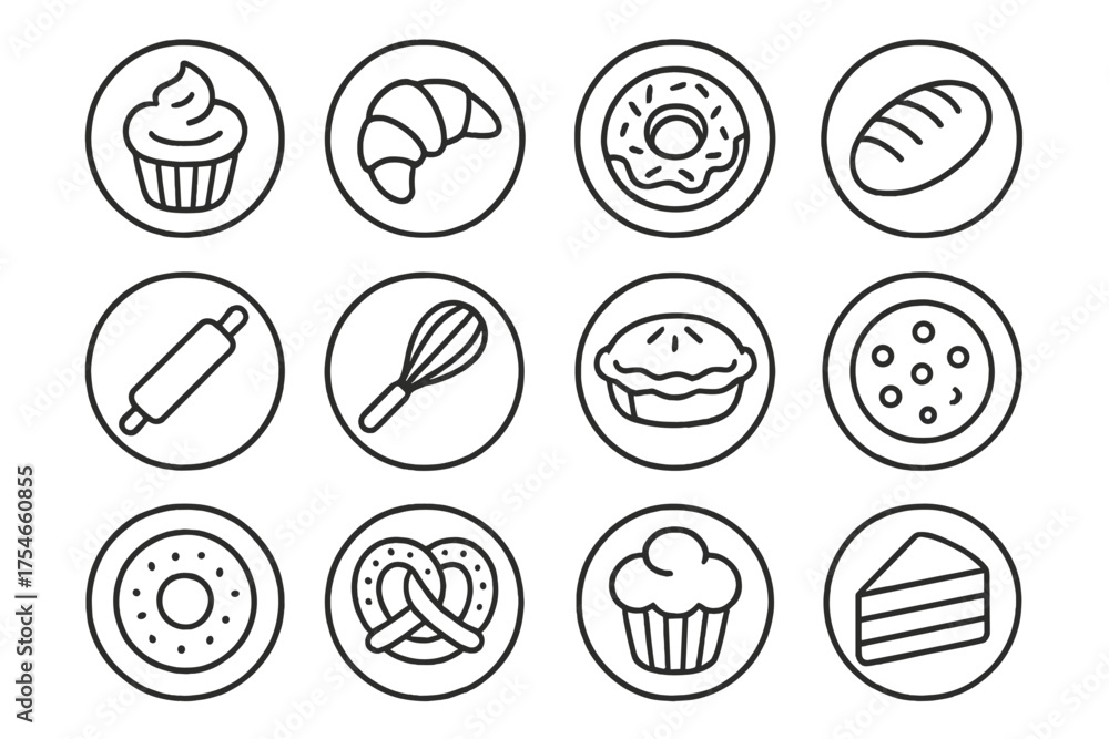 Bakery Icon Collection Line Style Round Icons Of Wallpaper Mural - Decorly Solutions | Decorly Solutions