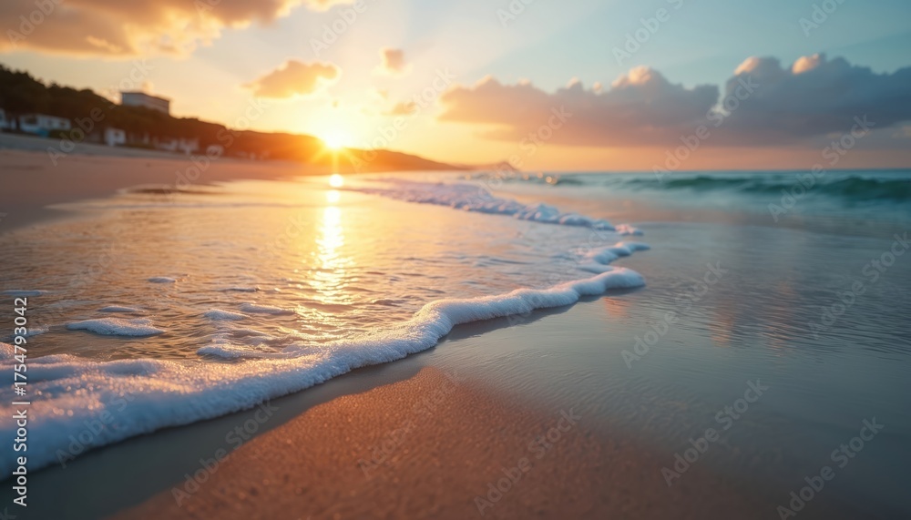 Vibrant Sunset Bathes Serene Ocean Beach With Golden Wallpaper Mural - Decorly Solutions | Decorly Solutions