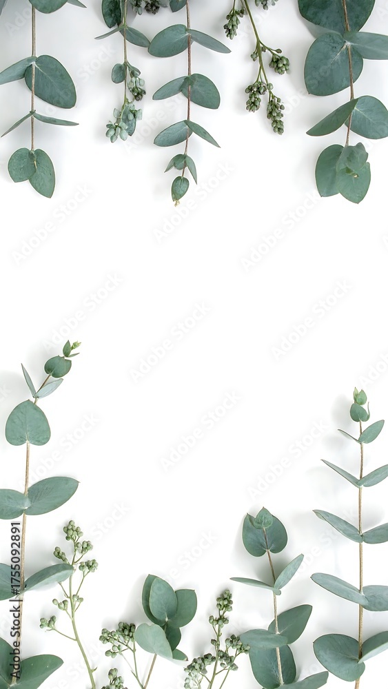 Eucalyptus Frame on White - Minimalist Botanical Design Wallpaper