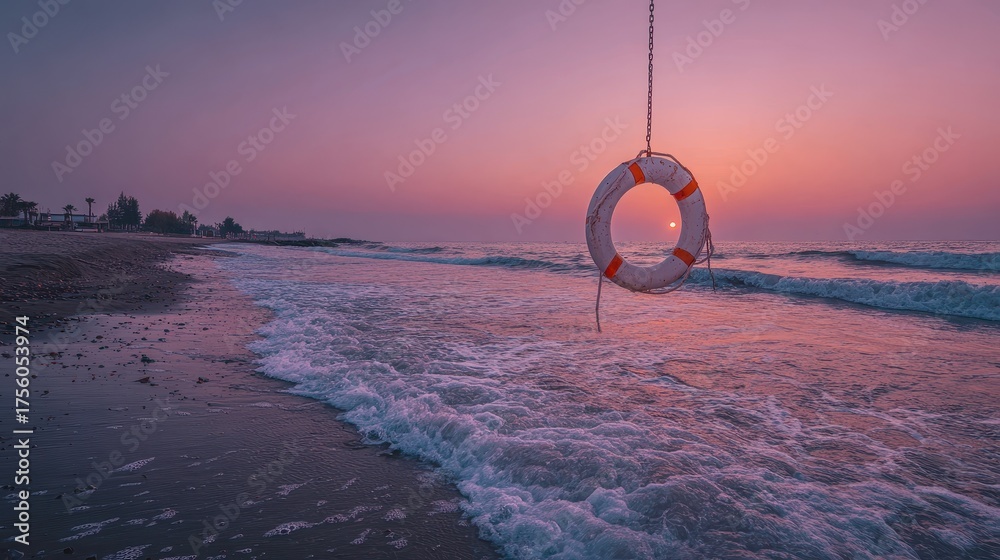 A Life Preserver Hangs On A Chain At Wallpaper Mural - Decorly Solutions | Decorly Solutions