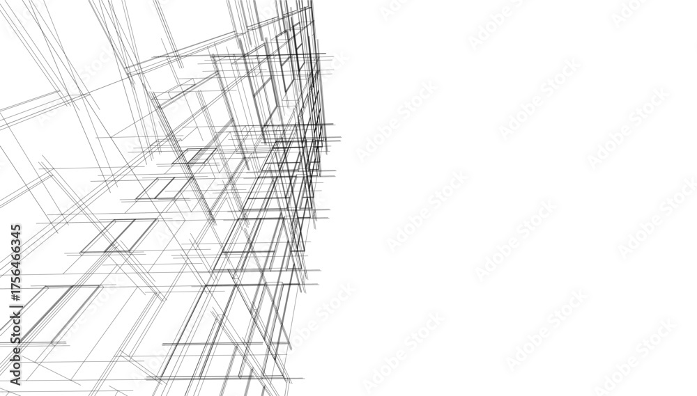 Sketch Of A Building 3d Illustration Wallpaper Mural - Decorly Solutions | Decorly Solutions