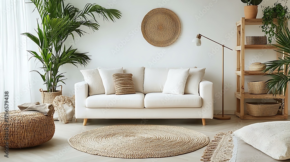 Bright And Inviting Living Room With A Comfortable Wallpaper Mural - Decorly Solutions | Decorly Solutions