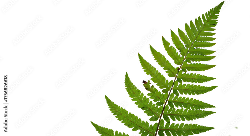 Fern frond with green leaves on a white background. Ideal for nature themed designs, botanical illustrations, or environmental concepts. Generative AI