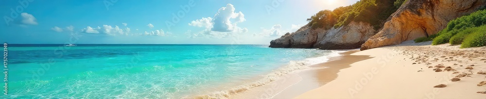 Sun-drenched coastal scene turquoise water laps gently again Wallpaper