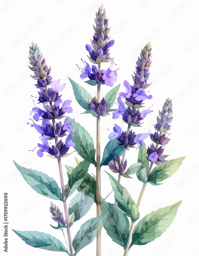 Beautiful Watercolor Illustration Of Purple Flowering Plants With Wallpaper Mural - Decorly Solutions | Decorly Solutions