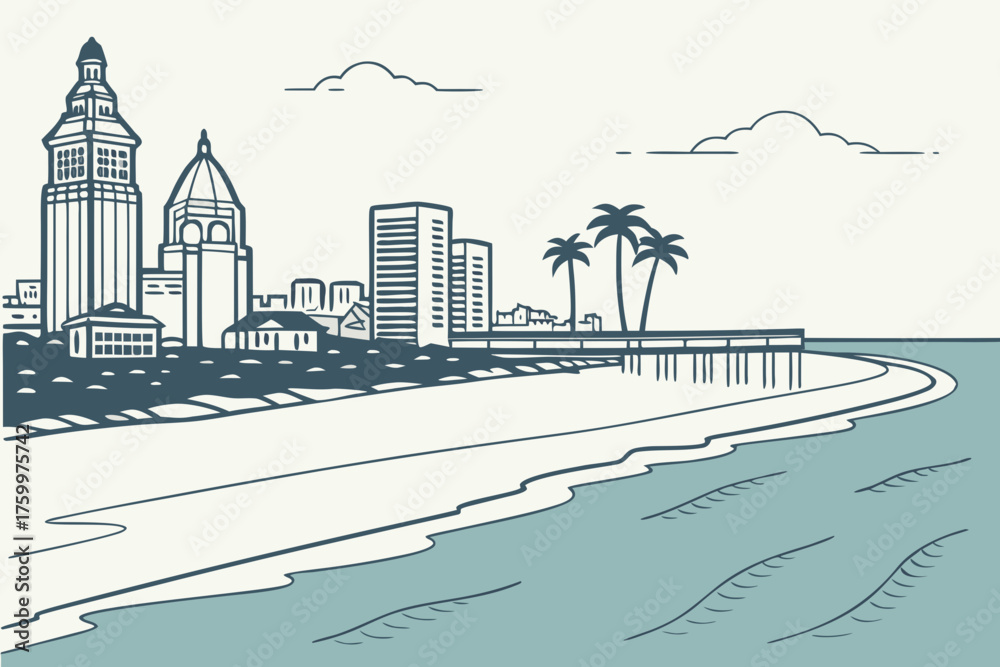 Minimalist San Diego Skyline Vector With Calm Beach Wallpaper Mural - Decorly Solutions | Decorly Solutions