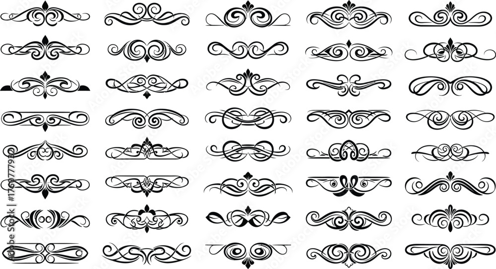 Ornate Flourishes Collection Set Of Black Calligraphic Elements Wallpaper Mural - Decorly Solutions | Decorly Solutions