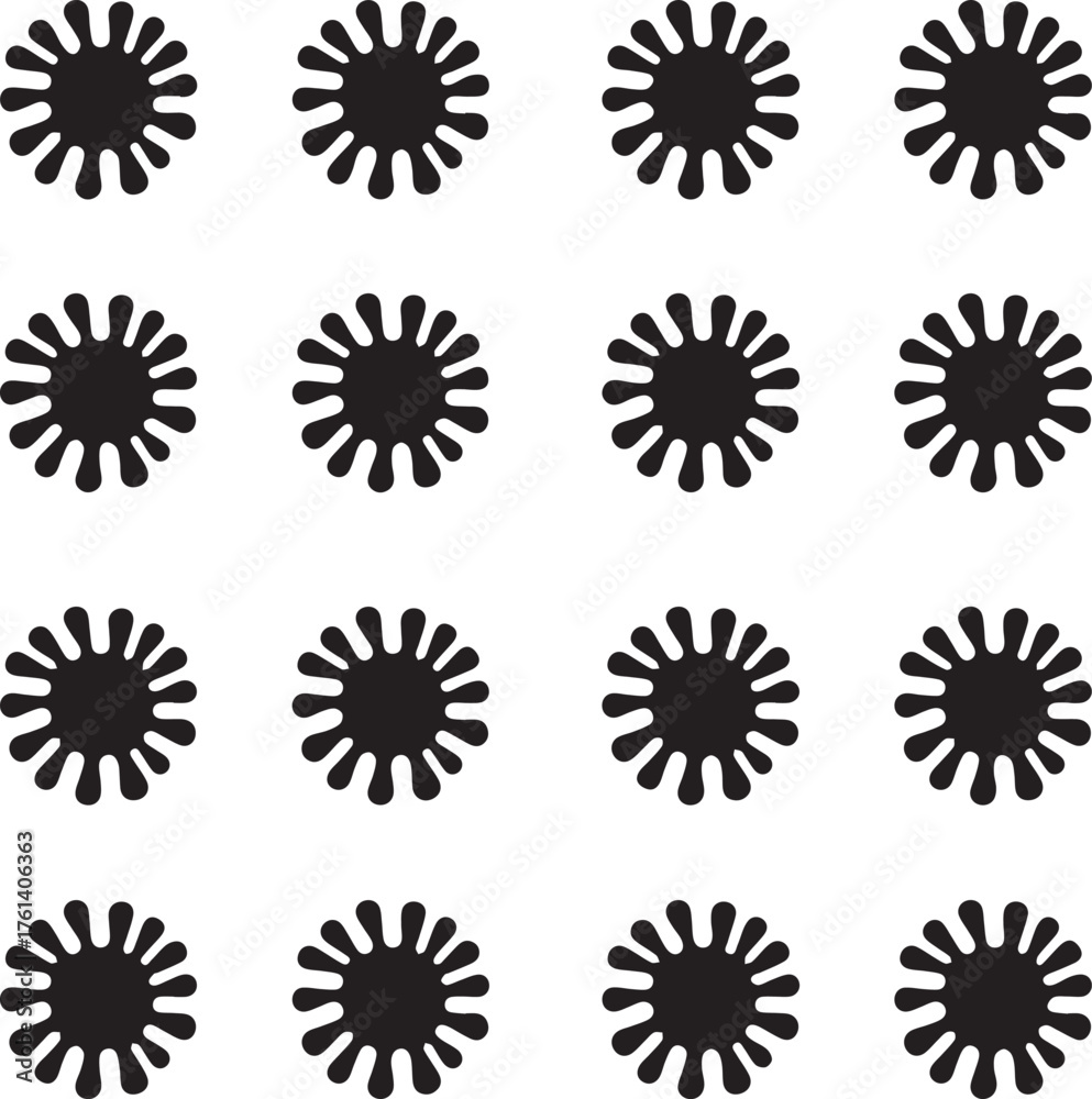 Repeating Pattern Of Black Starburst Shapes On White Wallpaper Mural - Decorly Solutions | Decorly Solutions