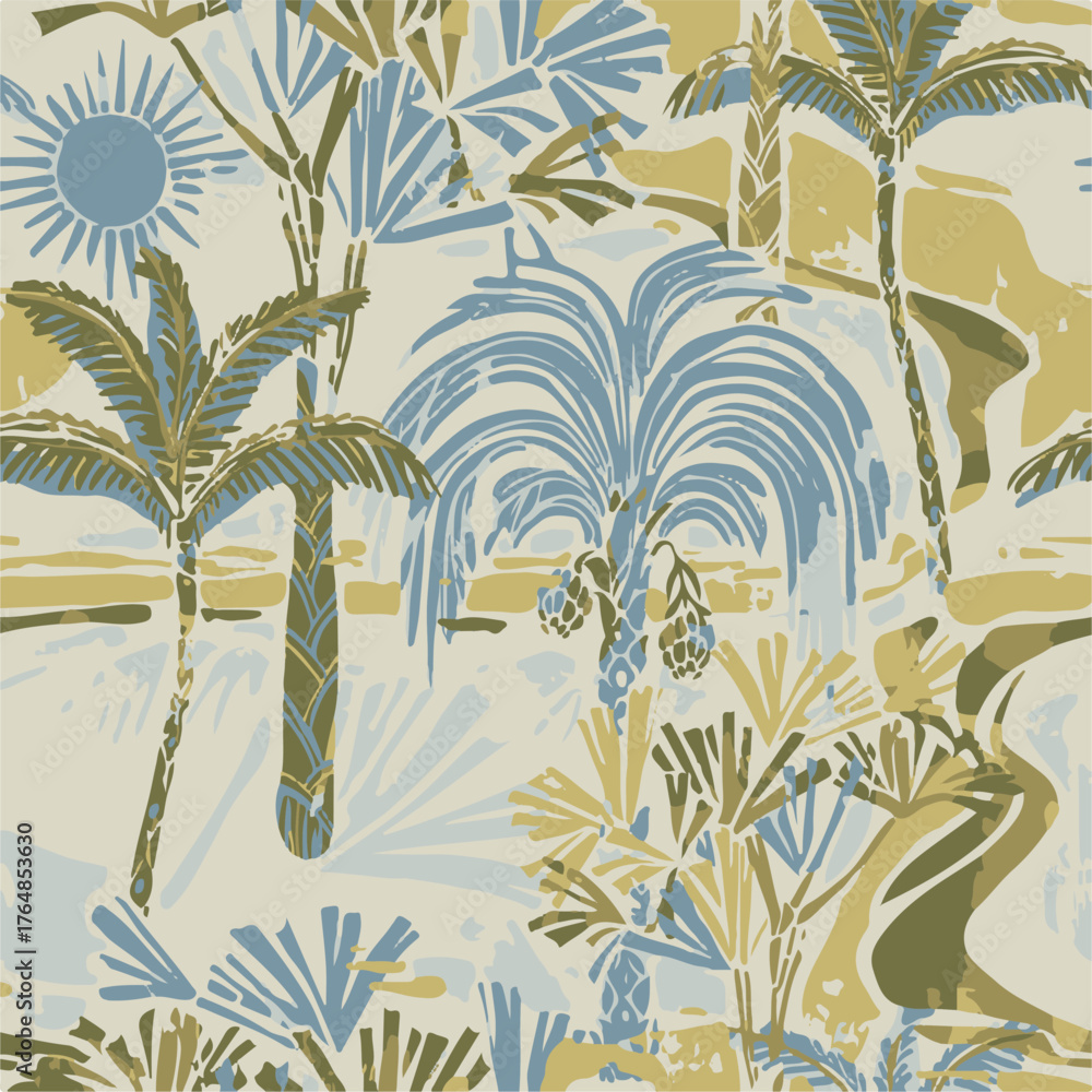 Summer Tropical Garden Floral Leaves Illustration Background Seamless Wallpaper Mural - Decorly Solutions | Decorly Solutions