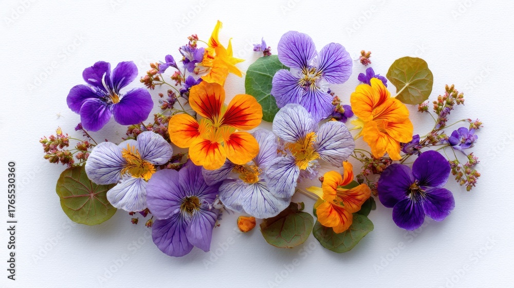 Vibrant Arrangement Of Purple And Orange Nasturtium Flowers Wallpaper Mural - Decorly Solutions | Decorly Solutions