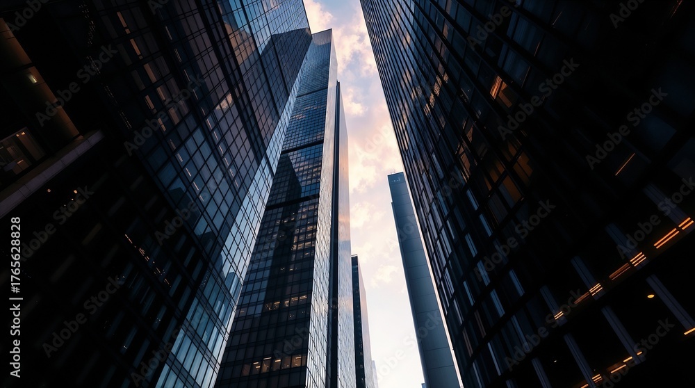 Reflective Skyscraper Business Office Buildings Bottom Up View Wallpaper Mural - Decorly Solutions | Decorly Solutions