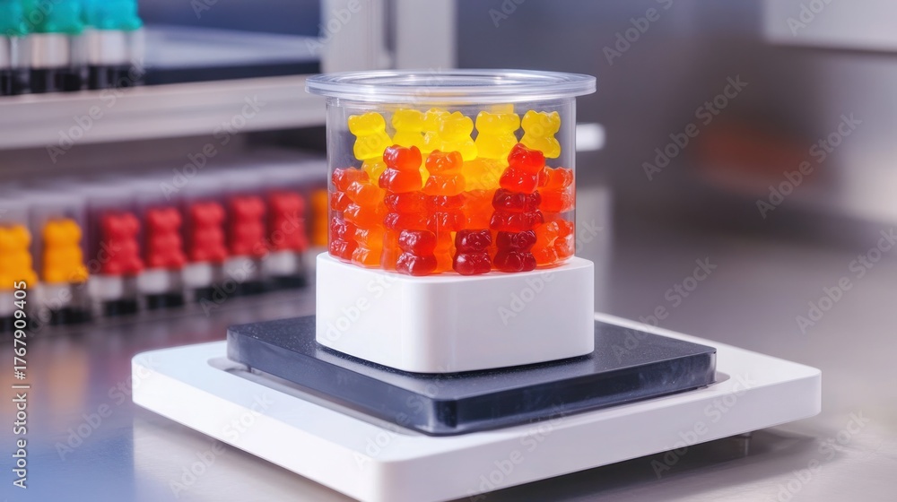 Colorful Gummy Bears Weighed On A Precision Scale Wallpaper Mural - Decorly Solutions | Decorly Solutions