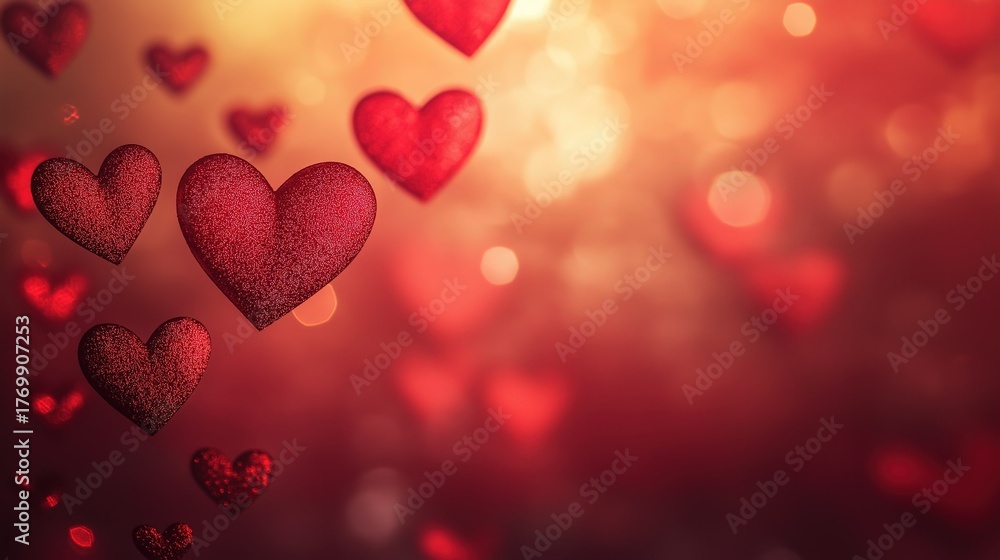 3d Digital Art Red Glitter Hearts Floating Warm Wallpaper Mural - Decorly Solutions | Decorly Solutions