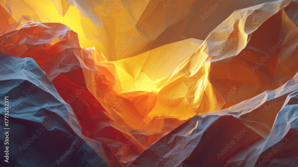 Luminous, translucent paper folds form abstract floral shapes in warm colors