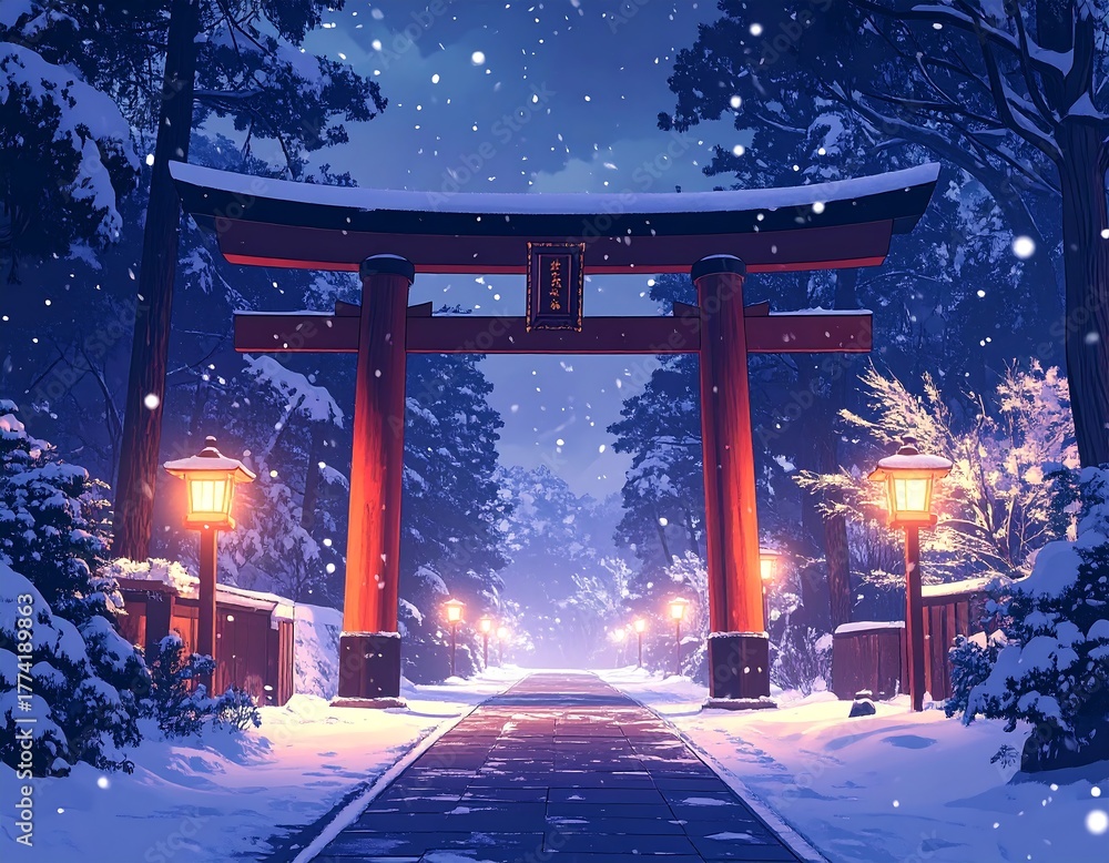 A Red Torii Gate Stands Snow-covered Amidst Snowy Wallpaper Mural - Decorly Solutions | Decorly Solutions