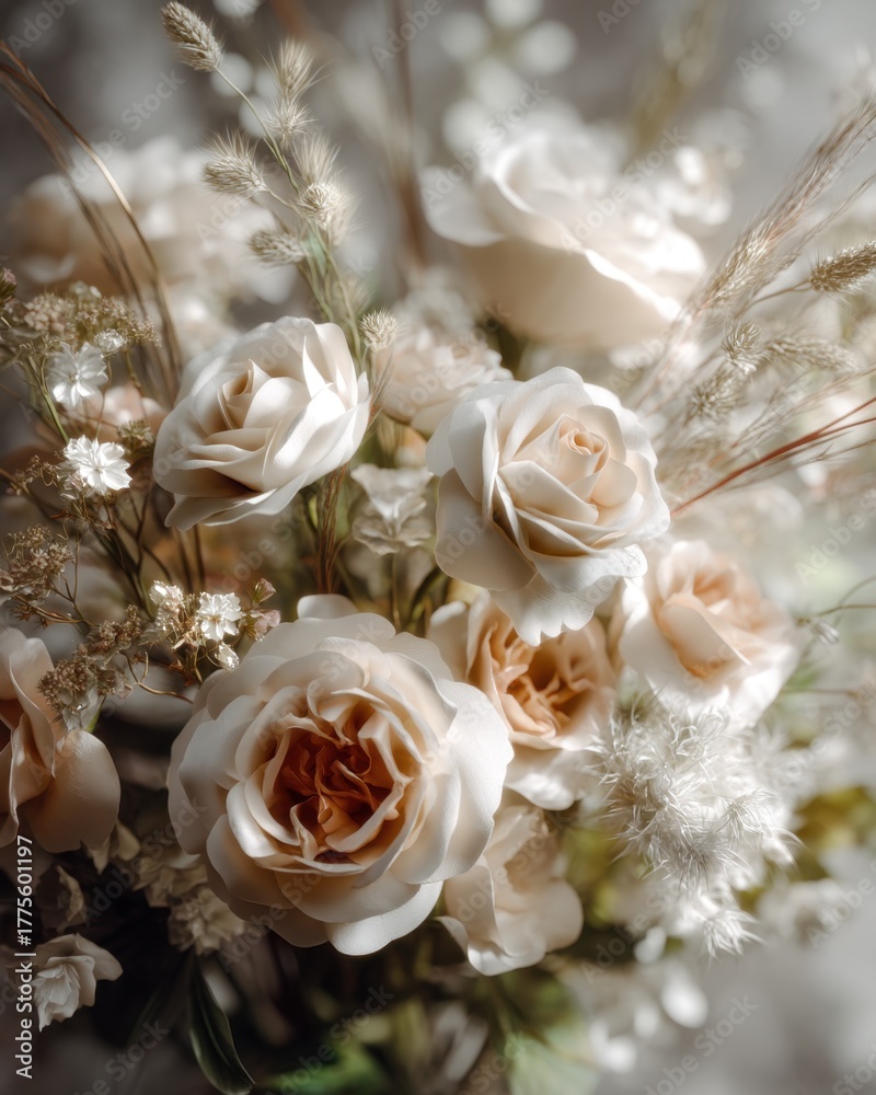Close-up Bouquet Of Roses And Decorative Plants With Wallpaper Mural - Decorly Solutions | Decorly Solutions