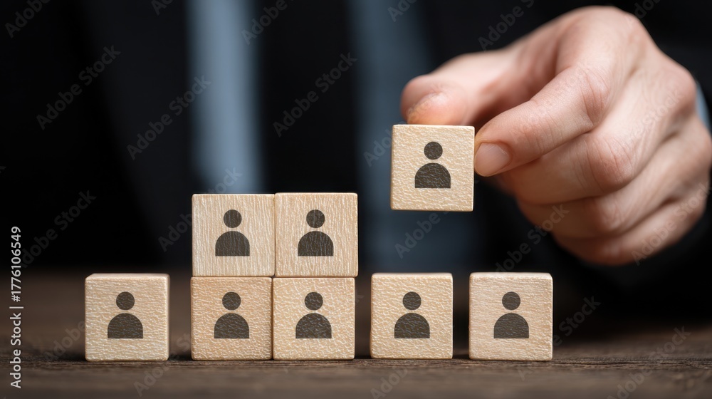 Businessman holds a wooden block in his hands. The concept of personnel selection and management within the team. Dismissal and hiring people to work. Human Resource Management. Leader selection.