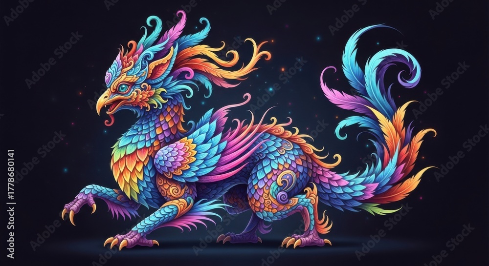 Psychadelic Theme Dragon. Chinese New Year Symbol. Spirit Animal Totem